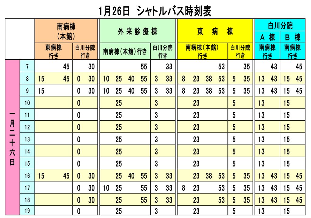 1月26日のシャトルバスの運行について