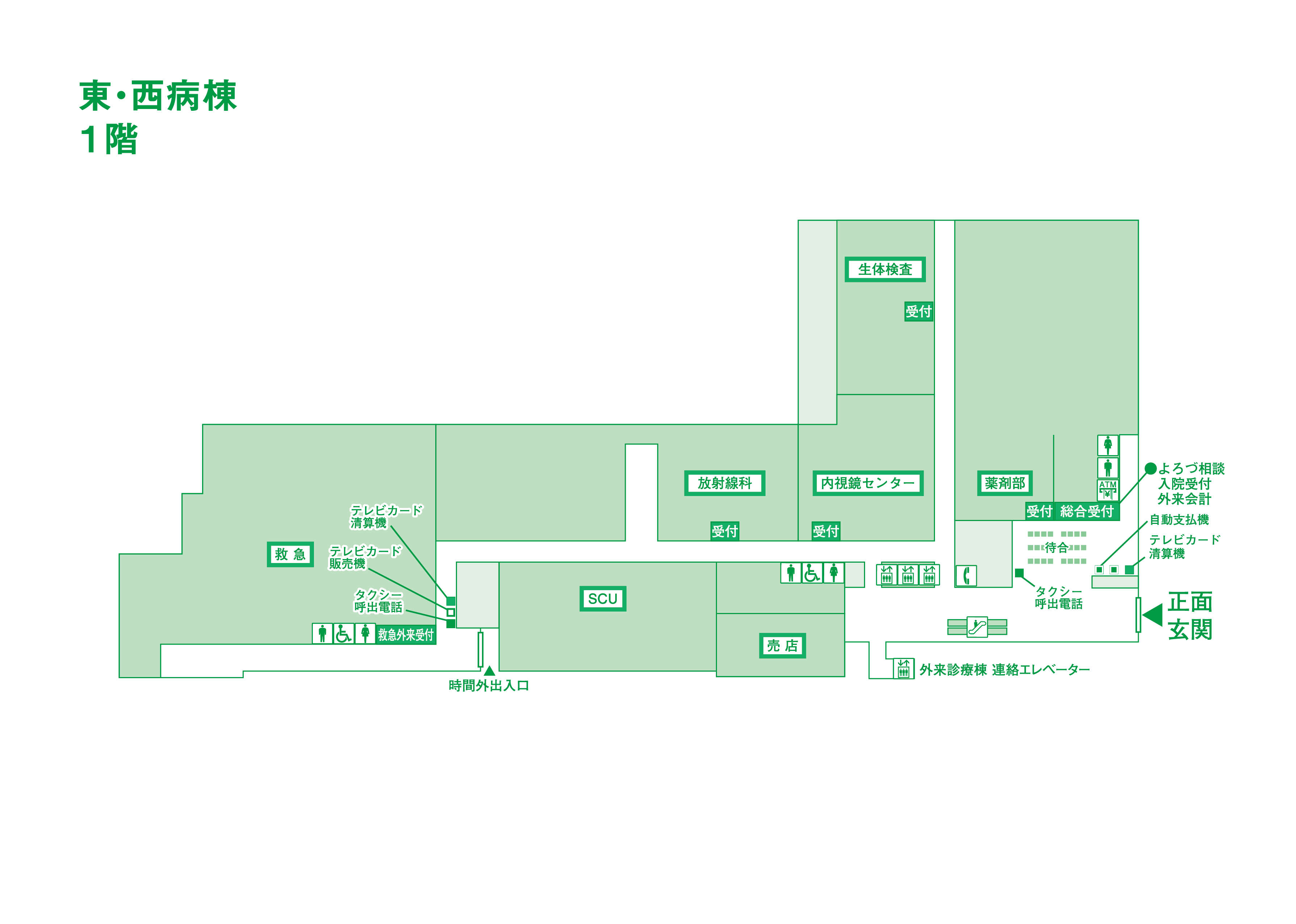 施設概要 東・西病棟 病床数 518床(一般病棟、手術室、ICU・CCU、SCU) 東病棟 10階 東10病棟 参拝場 9階 東9病棟 8階 東8病棟 7階 東7病棟 6階 東6病棟 5階 東5病棟 4階 東4病棟 3階 東3病棟 2階 東2病棟 透析センター 1階 内視鏡センター 薬剤部 臨床検査部 事務部門 西病棟 5階 西5病棟 4階 医局 会議室 3階 西3病棟 2階 手術室 ICU・CCU 心臓カテーテル室 1階 救急病棟 SCU 救急外来 放射線部 ファミリーマート 2階ハイブリッド手術室 2階ICU・CCU 1階SCU(脳卒中センター) 1階救急時間外診察待合 東・西病棟で行う外来 救急外来 内視鏡センター 館内マップ 6-10階 5階 4階 3階 2階 1階 売店営業時間 売店「ファミリーマート」(1階) 営業時間 8:00~21:00 休業日 12月31日・1月1日 備考 通常のファミリーマート取扱い商品に加え、病院指定の医療雑貨を販売しています。 おでん、酒類、たばこ類は取り扱っておりません。 店内にATM(ゆうちょ銀行利用可能)を設置しています。 お支払いは、現金、クレジットカード、電子マネーを利用できます。 (その他)宅急便の受付、切手・はがきの販売 面会時間(一般病棟) 面会禁止緩和のお知らせ ※2023年7月3日より面会禁止を緩和いたします。詳細は下記リンクをご覧ください。 面会について 駐車場のご案内 駐車場案内図 ◆東西病棟玄関前駐車場 乗用車 47台(軽2台を含む) ご利用料金:最初の2時間まで200円 以降2時間ごと100円(24時間最大料金800円) ご利用時間:24時間 ◆別所 第①駐車場 乗用車 102台 ご利用料金:最初の2時間まで200円 以降2時間ごと100円(24時間最大料金800円) ご利用時間:24時間 ◆別所 第②駐車場 乗用車 60台 ご利用料金:最初の2時間まで200円 以降2時間ごと100円(24時間最大料金800円) ご利用時間:24時間 場所 交通・自動車でお越しの方