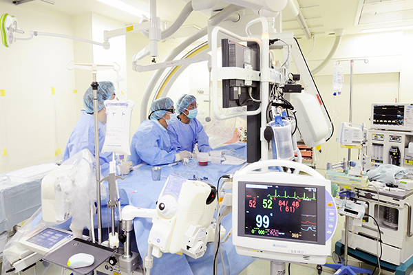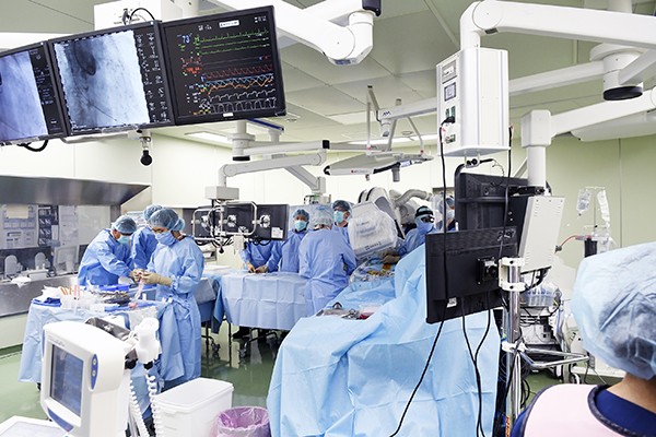 天理よろづ相談所病院は 2026年4月1日に開設60周年を迎えます 1966年4月1日、「財団法人 天理よろづ相談所」として設立認可を受け、おやさとやかた西棟(現在の本館・南病棟)に開設されて以来、 病気だけでなく患者さんの心と生活に向き合う「全人的医療」を広く提供してきました。 開設60周年という節目を迎えることができましたのは、これまで長きにわたり当院の活動を支えてくださった地域の皆さま、天理教関係者を はじめ多くの方々のご尽力の賜物です。心より厚く御礼申し上げます。 当院は通称「憩の家」として知られていますが、これは創設者の二代真柱 中山正善氏によって、患っている病から縁を切りたいとくる人たち が希望の持てるように、そして病からたすかって“陽気ぐらし”の喜びを味わってもらいたいとの思いから命名されました。 記念すべき節目を迎えるにあたり、この創設の理念をすべてのスタッフが改めて共有し、地域の皆さまとの歩みを振り返り、未来への一歩 を踏み出す機会と捉え、新たな「憩の家」を目指して事業を展開していきます。 2025年4月1日、当院は奈良県より「地域医療支援病院」の承認を受けました。これからも病む人の“陽気ぐらし”を目指して、からだ・ こころ・くらしから病む人を支えるという理念に基づき、地域医療の中核を担う病院として求められる多様なニーズに応えていくことで、その 役割を果たしていきます。そして、病む人が心身共に安らかに憩える場として、すべてのスタッフが「笑顔と親切」をモットーに、これからも 安心安全な医療を提供していきます。 今後とも変わらぬご支援とご協力を賜りますようお願い申し上げます。 【特集】診療科部長インタビュー 副院長・循環器内科部長 田村 俊寛 脳卒中診療部 部長 藤本 基秋 副院長・泌尿器科 特定嘱託部長 奧村 和弘 産婦人科 部長 住友 理浩 副院長・循環器内科部長 田村 俊寛 ―循環器内科の特徴や、当院ならではの取り組みはありますか 当院の循環器内科は、色々に細分化された循環器内科疾患の各分野の専門医が揃っていますので、基本的には全ての循環器内科疾患に対応できる診療科であると思います。施設によっては細分化されているがために専門分野が独立しすぎて、まとまりにかける傾向になりがちですが、私はチームワークを大事にしていますので、毎日朝夕2回みんなで顔を合わせて話し合う場を設けています。そこで診療に少し難渋している患者さんを提示してもらい、それぞれの専門に関してのスペシャリストたちが意見を出し合いながら、患者さんに最良の診療ができるよう心がけています。 特に若い先生には、診療に悩んだときにはカンファレンスで遠慮なく提示してもらい、皆で顔を突き合わせてディスカッションします。例えば重症の心不全の患者さんで、ベースに心筋梗塞があったとします。当然、カテーテルで治療することは非常に大事ですし、さらにその後の心不全に対する管理をしなければなりません。中には慢性心不全に移行していく方もおられますので、そういった方に対する薬物療法や、さらには不整脈に難渋する方もおられます。そういった患者さんに最良の医療を提供できるよう、カテーテルインターベンション医、心不全医、不整脈医、心エコー医などの色々な分野から意見を出して話し合うことが非常に重要だと思います。 また、臨床のみならず学会発表や論文執筆などにも精力的に取り組み、当院の循環器内科を国内にとどまらず世界にもアピールしていきたいと思っています。 ―既往歴や基礎疾患だけでなく、患者さんを取り巻く環境も様々になりました そうですね。当院では、2014年6月からTAVI(重症大動脈弁狭窄症に対する経カテーテル的大動脈弁植込み術)を開始しました。患者さんのほとんどが80歳代、中には90歳代の方もおられますが、そういった時にこそTAVIの適応をみんなでしっかり評価することが大切だと思います。 最近、週刊誌などでは施設の症例数をかなり大げさに取り上げたりする傾向があるのですが、当然ある程度の症例をこなすことは大事だと思います。しかしながら、個々の患者さんで本当に適応があるのかどうか評価することはもっと大事だと思います。例えば、認知症があって右も左もわからなかったり、寝たきりに近い患者さんだったり、あるいは家族構成が多様化し家族のサポートが得られにくい状態であったり、また医療費は高額になりますので、適応の可否については様々な要因を考慮して重点的に評価をしています。 ハイブリッド手術室で行われているTAVI(重症大動脈弁狭窄症に対する経カテーテル的大動脈弁植え込み術) ―患者さんを取り巻く環境の変化に対応する上で大切なことは何でしょうか 治療後のケアやフォローを地域の先生方にお願いすることが多くありますので、病診・病病連携が非常に重要です。当院は、私が過去に勤務してきた他の病院と比べ、どちらかと言えば少し受け身的であるよ