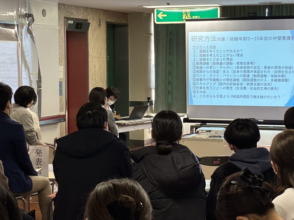 2026年2月14日(土)9:00~12:30に開催しました。発表演題は25題で、2会場に分かれ、参加者は74名でした。 内訳は、 2024年度ラダーレベルⅣ・Ⅴチャレンジ「業務改善・マネジメント研修」での取り組み 2題 2024年度ラダーレベルⅡチャレンジ「リフレクション研修」での取り組み 9題 各部署の取り組み 6題 既に学会等で発表された演題 8題 病棟、中央部門(手術部)、外来、救急診療部、医療安全管理室など、さまざまな部署から発表があり、幅広いテーマについて活発な意見交換が行われました。 医療・看護サービスは形に残りにくい特性がありますが、リフレクションを通して日々の実践を振り返り、意味づけを行うことは、看護の質の向上だけでなく、やりがいの再確認にもつながります。 発表資料の作成には多くの時間と労力を要しますが、実践を共有することで新たな気づきや学びが生まれる貴重な機会となりました。 今後も、より良い看護の提供に向けた取り組みを継続してまいります。